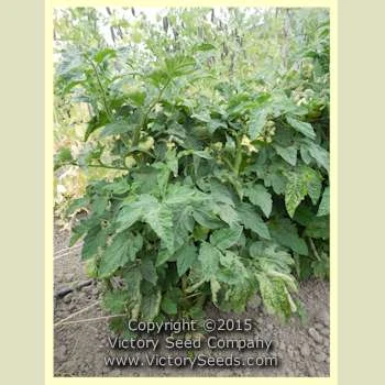 Indeterminate. 80 days, dwarf — ‘Adelaide Festival’ is a vigorous, rugose, regular leaf variety that produces fruit that are a rich purple color (clear skinned black) with green stripes that ripen to olive-gold. They are medium-sized (six to ten ounce), smooth, oblate in shape, very juicy and tender with a delicious, well-balanced flavor that is neither too tart or too sweet.