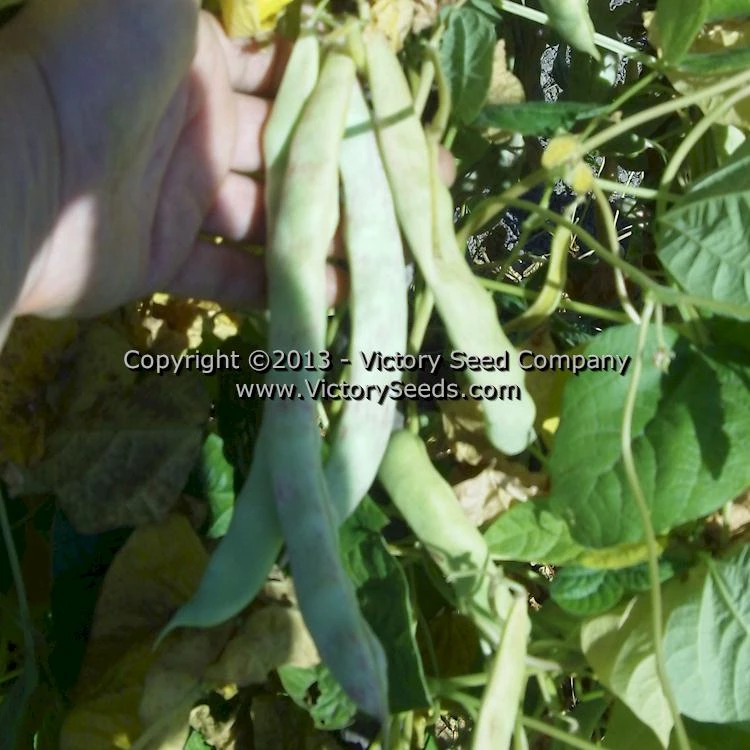 80 days — The productive vines of ‘Aunt Doll’ beans are vigorous and productive. According to Sammie Long of Tennessee who sent us this bean, “This is a green stick pole been that has been handed down in my family for over a hundred years. The pods are long and flat (up to twelve inches in length) and approximately one inch wide. These bean are good as a green or dried bean and as leather britches. Two, sixty foot rows will produce and average of eight to twelve bushels per growing season.” Each packet contains one ounce, which is approximately 50 seeds.