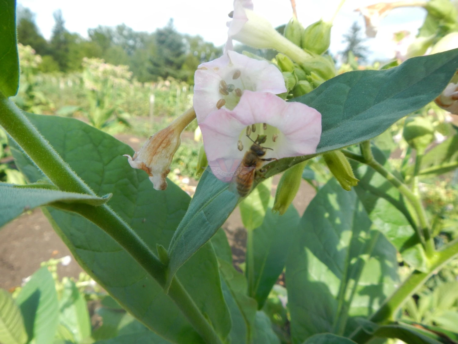 Classified as an “Oriental” tobacco, ‘Bahia’ can grow to about thirty inches tall. Its leaves tend to be long and narrow, about twice as long as wide (eight inches wide by fifteen inches long), smooth, high quality, and historically used for cigar wrappers.
