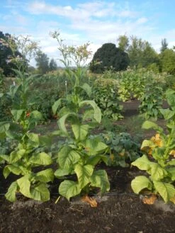 Classified as a “flue-cured” tobacco, ‘Banana Leaf’ grows five to six feet in height. Its leaves are large (twelve inches wide by twenty-six long), and historically used for cigarette and pipe tobacco blending.