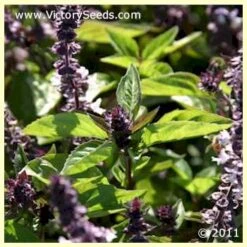 70 days – ‘Cinnamon Basil’, also sometimes called ‘Mexican Spice’ basil, is a variety that grows eighteen to thirty inches tall and twelve to eighteen inches wide. The cinnamon scented leaves grow up to two inches long. The stems are purple with small purple flowers that are in bloom in the summer.