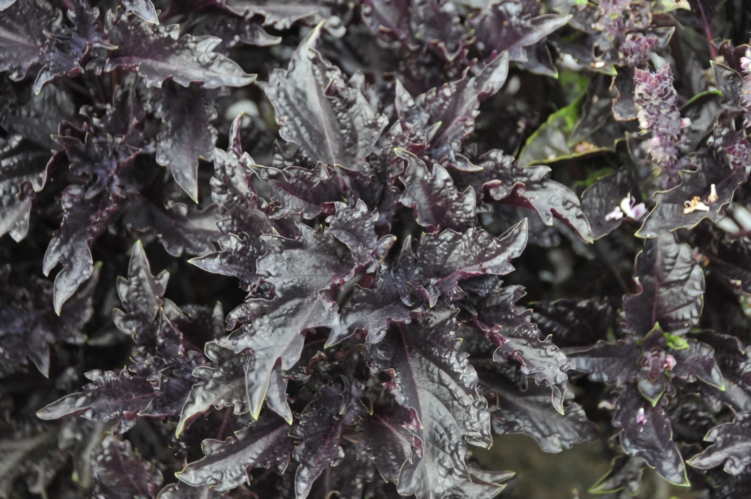 Striking deep shiny purple leaves, ruffled and fringed, makes this highly ornamental, and is also an excellent tasting basil. All-America Selections National winner in 1987.