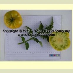 Developed by members of the “Dwarf Tomato Project” from a cross between ‘Golden Dwarf Champion‘ and ‘Cherokee Chocolate‘, ‘Big Green Dwarf’ is the result of the collaborative work of Patrina Nuske Small, Marjorie Holloway (who named it), Craig LeHoullier and Bill Minkey. Introduced in 2014, it is relatively stable, and although rare, an occasional plant will exhibit red fruit. Each packet contains approximately 20 seeds.