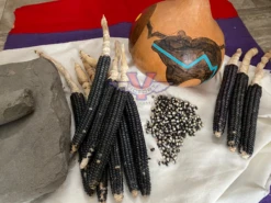 This quick growing Native corn endures early cold soil planting as well as blasts of summer heat. It is a Native heirloom composite selected for over 30 years. It’s ancestry is 50% from the famous stress-resistant Painted Mountain Corn, and the other 50% is from four ancient concho corns from 8,000′ elevation in the Rocky Mountains of the SW desert region. These are the survivors of years of drought in dry land northern Montana, adapted to the escalating climate change. For tomorrow’s climate survivors, and people around the world suffering badly from drought.