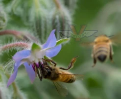 Borage, also known as “Burrage,” “Beebread,” “Beeplant,” and “Talewort,” is native to Great Britain, Europe and North Africa but has been naturalized all over the world. Its leaves are oval, pointed, with bristles on both surfaces. The stems are sturdy, ridged, and bristly reaching two to three feet tall and covered with blue, star-shaped flowers; the blooming period is from June into August. Its flowers are attractive to bees as well as other pollinating insects.