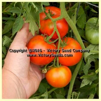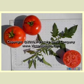 85 days, indeterminate — ‘Break O’ Day’ produces small-leaved, open, spreading vines well supported by an extensive root system. The red fruit are large, smooth, meaty, and globular, similar to those of the ‘Marglobe’.