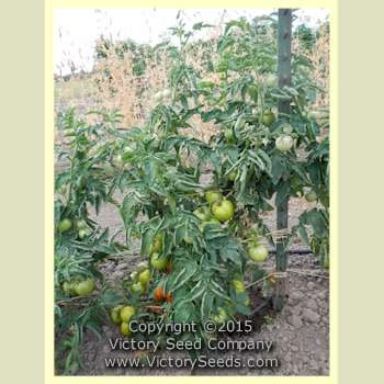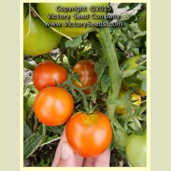 Developed by members of the “Dwarf Tomato Project” from a cross between ‘Black from Tula‘ and ‘Budai Torpe’ made by Patrina Nuske Small. ‘Bundaberg Rumball’ was selected and named by Richard Allen. Among those who contributed to stabilizing this dwarf variety were Patrina, Howard Kushner, Carol Knapp, Ted Maiden, Christy Shedd, Amanda Fischer, Craig LeHoullier and Bill Minkey. Introduced in 2015. Each packet contains approximately 20 seeds.