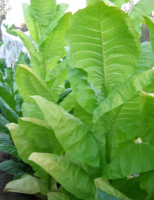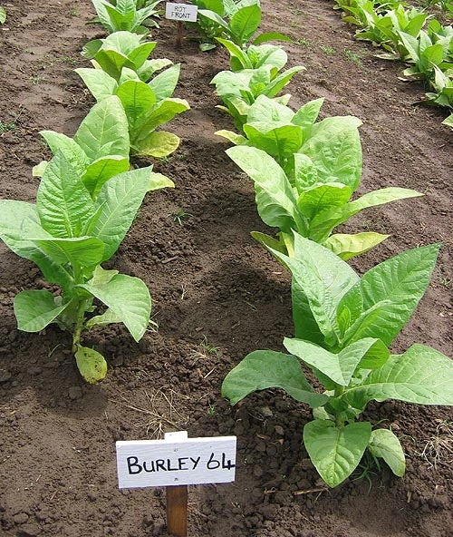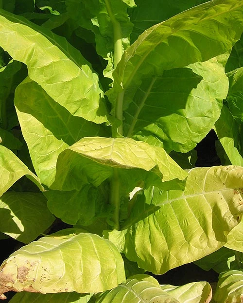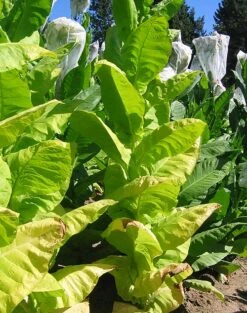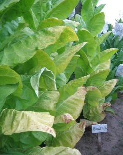 Burley 64 is a columnar formed plant growing to 6′ in height, and reaches maturity in about 65 days. It is a white stemmed burley with large light green leaves that turn bright yellow as they ripen. It gives good yields with very little suckering, and cures easily, either stalk hung or primed. Burley 64 is resistant to black root rot, tobacco mosaic virus, fusarium wilt, and black shank. Each packet contains about 100 seeds.