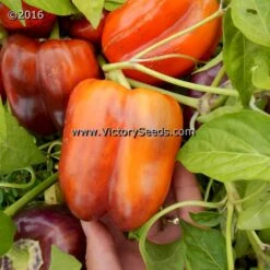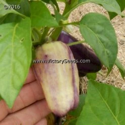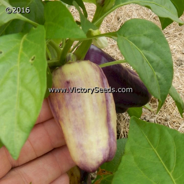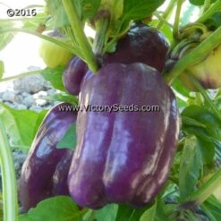 The bell-shaped fruit are blocky and average about four inches by four inches. They start off as a beautiful pale ivory color and very quickly, as implied by their namesake gemstone, change to hues that range from lilac to deep purple at harvest stage. If allowed to remain on the plants, for example to save seed, they eventually turn to a mottled, orange-red.