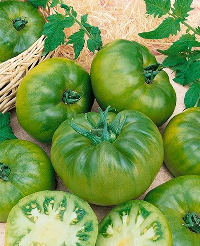 in plant habit, fruit shape and size and flavor, but the interior ripens bright green and the skin takes on a yellowish-hue when ripe.