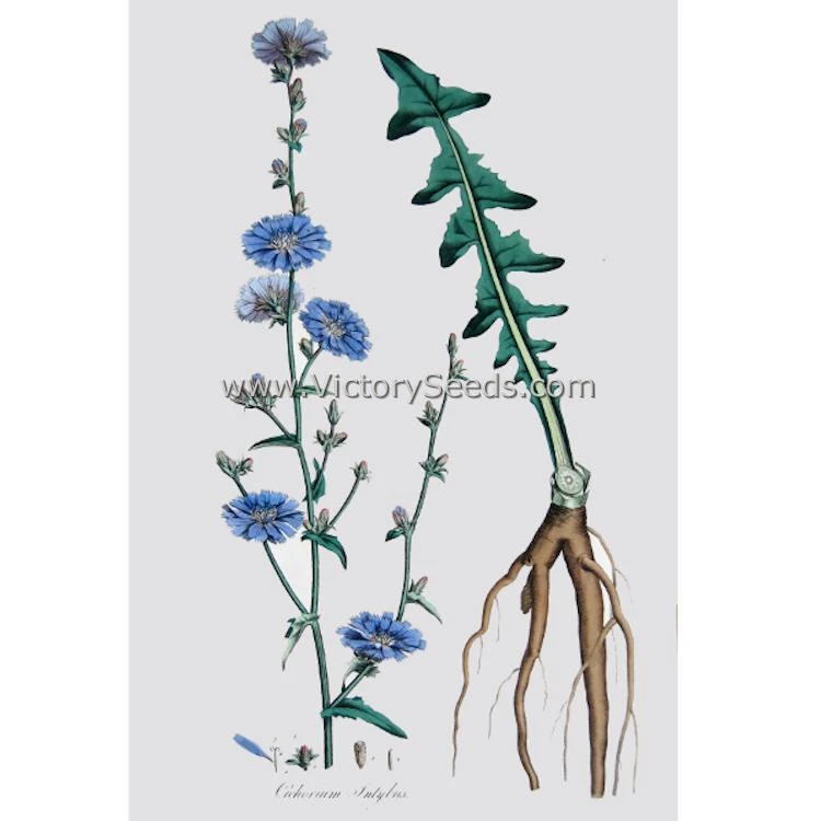Chicory, with sugar beet and rye was used as an ingredient of the East German Mischkaffee (mixed coffee), introduced during the “coffee crisis” of 1976 to 1979. Some beer brewers use roasted chicory to add rich flavor to their stouts. USDA Zones 3-9. Perennial. Each packet contains 0.25 gram, which is approximately 200 of seeds.