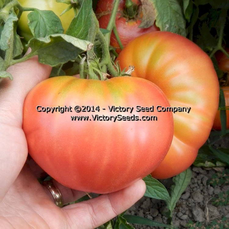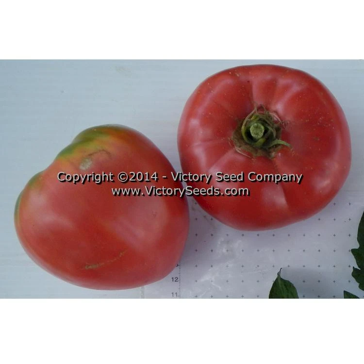 90 days, indeterminate — Regular leaf plants produce good quantities of dark pink, eight to twelve ounce fruit that have a very good flavor. They typically are an elongated-globe shape but are sometimes inconsistently shaped with some developing a classic heart shape.