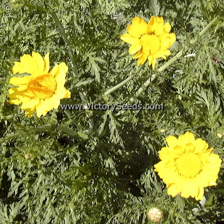 Garland Daisies prefer locations that receive full sun, in either dry or moist areas. They will grow twenty-four to thirty-six inches in height, and bloom from summer into the fall. Their blossoms are yellow in color. Each packet contains 0.25 gram, which is approximately 150 seeds.