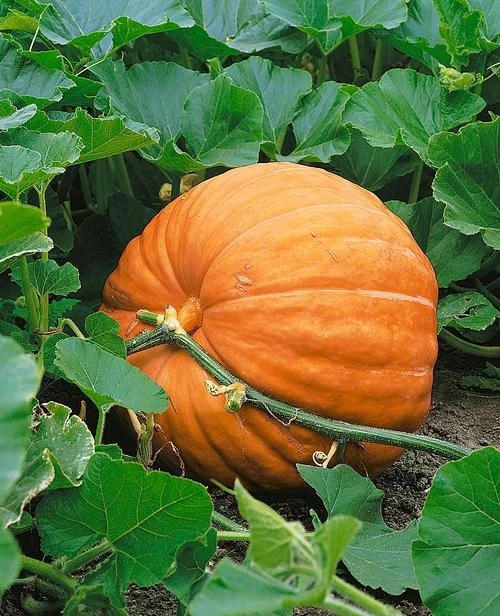 120 days — If you are interested in raising “giant” pumpkins, ‘Dill’s Atlantic Giant’ is the type of variety that the professionals use to set records. Fruit weighing over two-hundred pounds are common and ones in the four-hundred to five-hundred pound range are possible. These huge fruit have slightly rough skin that ranges in color from yellow to red-orange. As you may have guessed, these babies need a lot of room and are not for container gardeners. Space hills fifteen to twenty feet apart in an area that is protected from wind and that receives full sun.
