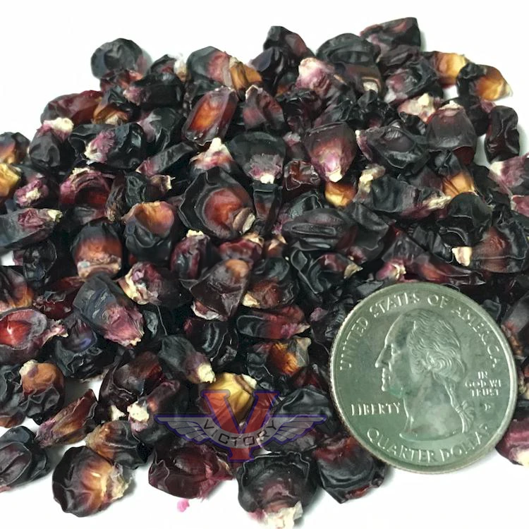 80 to 100 days — The stalks, leaves, and cobs of ‘Double Red’ sweet corn are beautifully colored in hues of purple and reach six to seven feet tall. Producing two ears per stalk, the kernels are an intense, anti-oxidant rich, anthocyanin-dense, purple color. Harvested young, at about eighty days, it is a sweet and tasty fresh eating ear. It can also be allowed to reach dry stage and ground into a quality, sweet tasting, cornmeal or flour.