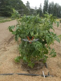 75 days, dwarf – The rugose, potato leaf dwarf plants of ‘Dwarf Beastly Yellow Heart’ are quite large, growing over four to five feet in height. Its medium sized (3 to 7 ounce) fruit are heart-shaped, yellow in color with some developing blossom-end blushing. Its flavor is surprising, mildly tart and quite good.
