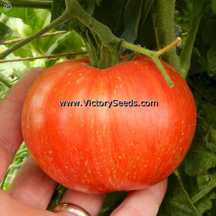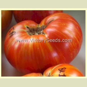 75 days, dwarf — ‘Dwarf Beauty King’ is a very productive rugose, regular leaf dwarf-type plant. Its fruit are medium sized, oblate shaped, smooth skinned, and red in color with vertical, gold striping; truly beautiful. As an added bonus to their beauty, they offer a rich, balanced flavor.