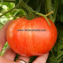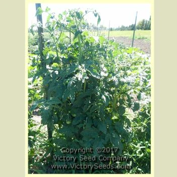 This “Dwarf Tomato Project” variety originated from a cross by Vince Lavallo in 2011 between an early generation of ‘Dwarf Wild Fred‘ and Wild Boar Farm’s ‘Beauty King’. This original cross was named “Beauty.” ‘Dwarf Beauty King’ was selected and named in 2013 by Vince. Involved in its stabilization were Vince, Craig LeHoullier, Bill Yoder, Kay Robbins, and Susan Oliverson. Introduced for the 2017 gardening season. Each packet contains 10 seeds.