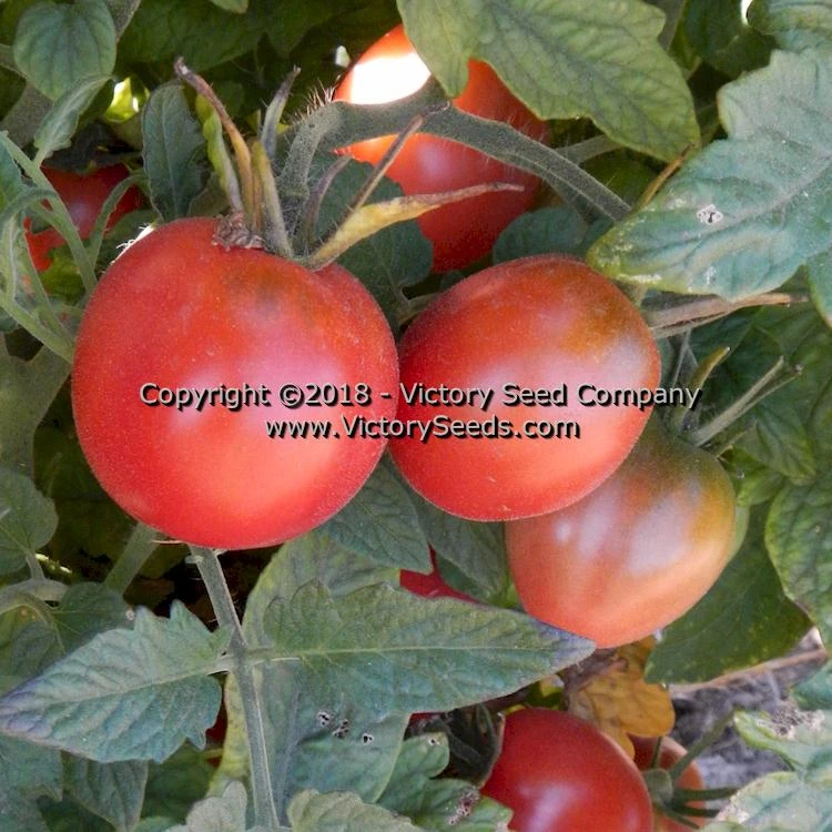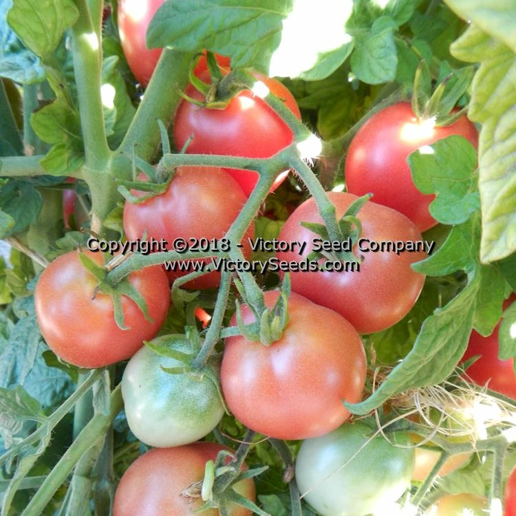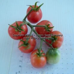 70 days, dwarf — ‘Dwarf Bendigo Drop’ has rugose, regular-leaf plants that produce lots of oval shaped, pink colored, cherry tomatoes that average about one ounce each and are very tasty. Excellent in salads and for snacking.