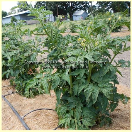 70 days, dwarf — ‘Dwarf Bendigo Rose’ has rugose, regular-leaf plants that produce lots of globe to slightly plum shaped, pink colored, large cherry-type tomatoes that average about one to two ounces each and are very tasty. Excellent in salads and for snacking.