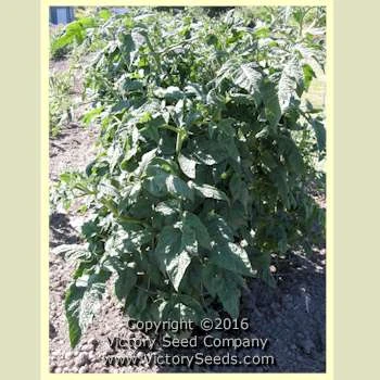 has deep green, rugose potato leaf foliage and a very stout central stem,