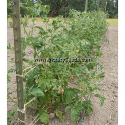 80 days, dwarf — The rugose, potato leaf plants of ‘Dwarf Big Valentine’ produce high yields of medium to very large (eight to fourteen ounces but can get up to the twenty to twenty-four ounce range), smooth, heart shaped, crimson pink tomatoes. The meaty tomatoes possess a well-balanced, slightly tart but sweet, delicious flavor. The plants average thirty-six inches in height, and, due to the high yield and weight of the tomatoes, require sturdy support.