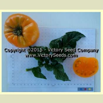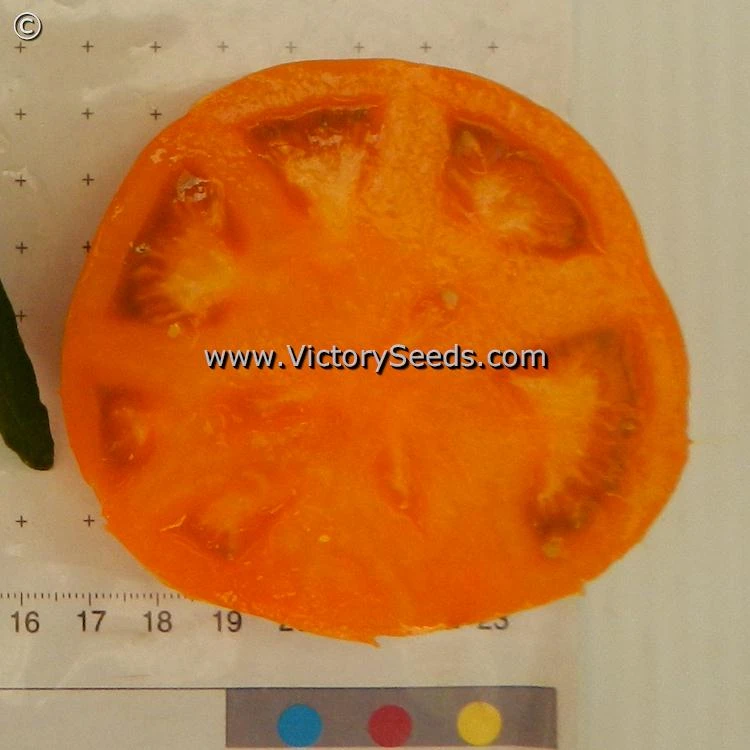 75 days, dwarf — ‘Dwarf Blazing Beauty’ was the first orange variety released by the “Dwarf Tomato Project.” Its plants are vigorous with rugose, potato leaves. The fruit are medium to medium large (four to fourteen ounces), smooth oblate and a deep orange color in and out. The flavor sparkles with an ample tart bite and is quite intense, very much resembling one of its parents, ‘Elbe’.