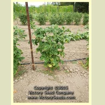 Developed by members of the “Dwarf Tomato Project” from a cross between ‘Golden Dwarf Champion’ and ‘Elbe’, ‘Dwarf Blazing Beauty’ was the collaborative work of Patrina Nuske Small, Craig LeHoullier (who named it), John Schmuch, Amanda Fischer, Bill Yoder, Dee Sackett, Doug Frank, and Susan Oliverson. Introduced in 2014. Each packet contains approximately 20 seeds.