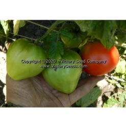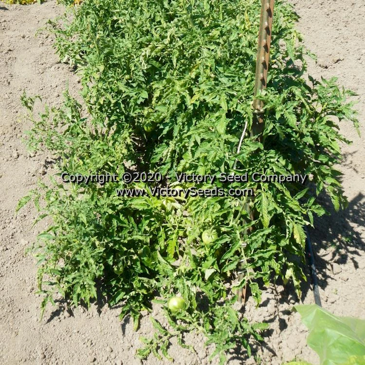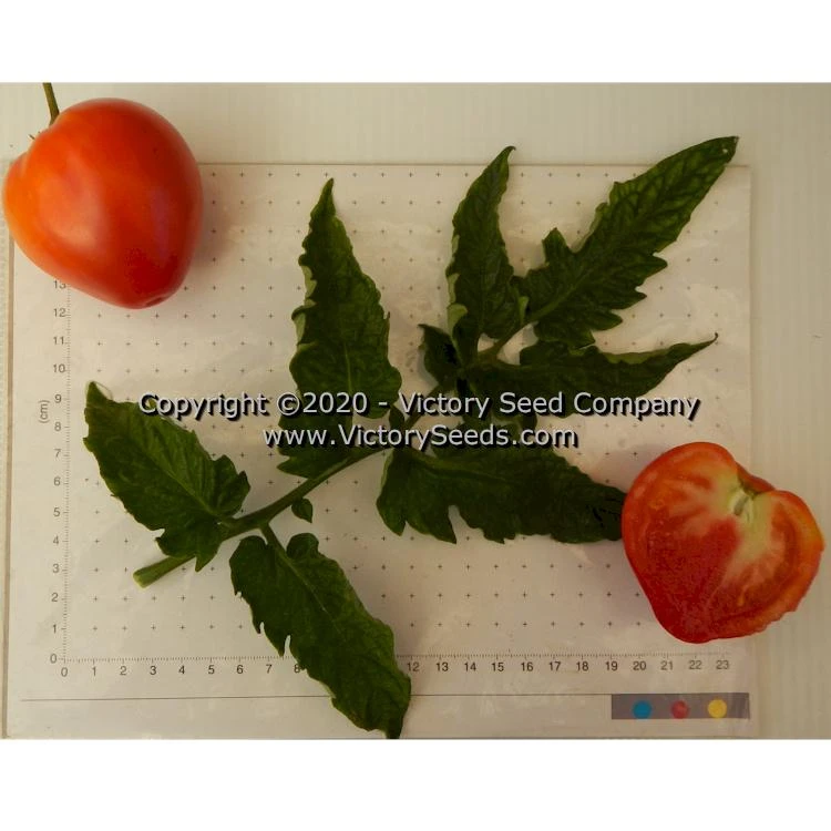 80 days, dwarf — The rugose, regular leaf plants of ‘Dwarf Buddy’s Heart’ produce scarlet-red colored, heart shaped, medium sized, very meaty fruit. They have a rich, balanced flavor whose texture makes it particularly suited for sauce preparations.