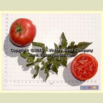 80 days, dwarf — A very old mid-season, nineteenth-century, slicing tomato variety with good flavor and texture. Tastes slightly tangy but is mild and has sweet overtones. The plants are compact with rugose leaves producing ample amounts of three to eight ounce, pink colored fruit.