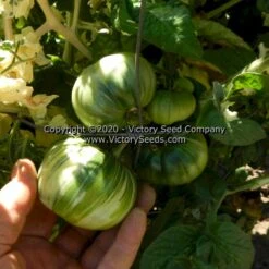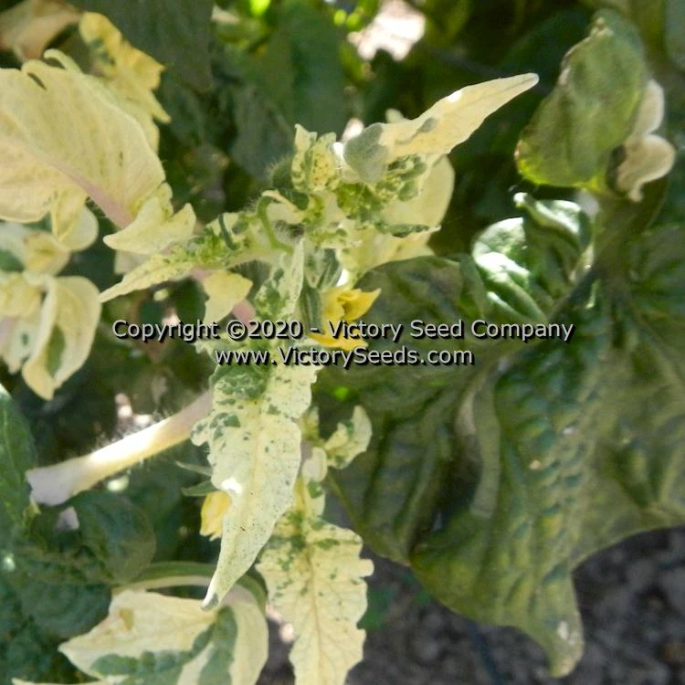 ‘Dwarf Elsie’s Fancy’, along with ‘Dwarf Walter’s Fancy‘ and ‘Dwarf Pico’s Pride‘, are the first variegated dwarf varieties developed by the Dwarf Tomato Project and introduced by the Victory Seed Company for the 2021 gardening season. Originating from the “Acey” family, it was named by Craig LeHoullier for his grandmother, Elsie, the wife of Walter. Additional contributors are Pete Adland, Tom Martucci, Susan Oliverson, Debra Kennedy, Jared Scoville, Kevin Campbell, Caitlin LeHoullier and Bill Minkey. Each packet contains at least 20 seeds.