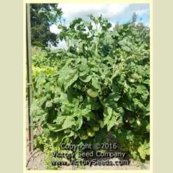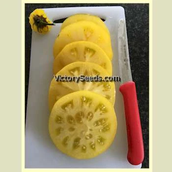 75 days, dwarf — The vigorous, rugose, potato leaf dwarf plants produce heavy yields of smooth, oblate, medium-yellow fruit with pale-yellow flesh. They range in weight from eight to eighteen ounces. The flavor is among the very best from the “Dwarf Tomato Project” varieties. It can be described as intense with a refreshingly distinct tang, and simply delicious.