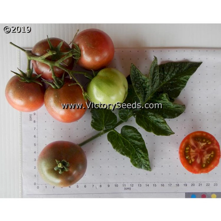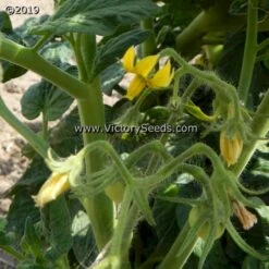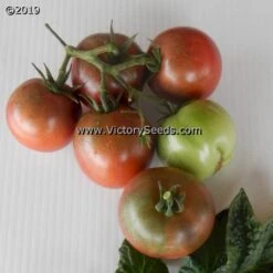 The “Hazy” family originated from a cross made by Vincent Lavallo between the Dwarf Tomato Project release ‘Dwarf Wild Fred‘ and ‘Purple Haze’. ‘Dwarf Hazy’s Dream’ was selected and named by Susan Oliverson, who said, “… it was a dream tomato; as good as the hybrid ‘Purple Haze’. Along with key contributor Susan Oliverson, others who participated in the development work were Craig LeHoullier and Justin Sieglaff, with Bill Minkey producing the final seed selection. Each packet contains at least 20 seeds.