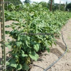 85 to 95 days, dwarf — The rugose, potato leaf plants of ‘Dwarf Hazy’s Dream’ produce high yields of medium sized, round shaped, purple colored fruit, that average about four ounces each. They have a pleasant, well balanced flavor.