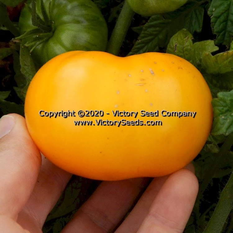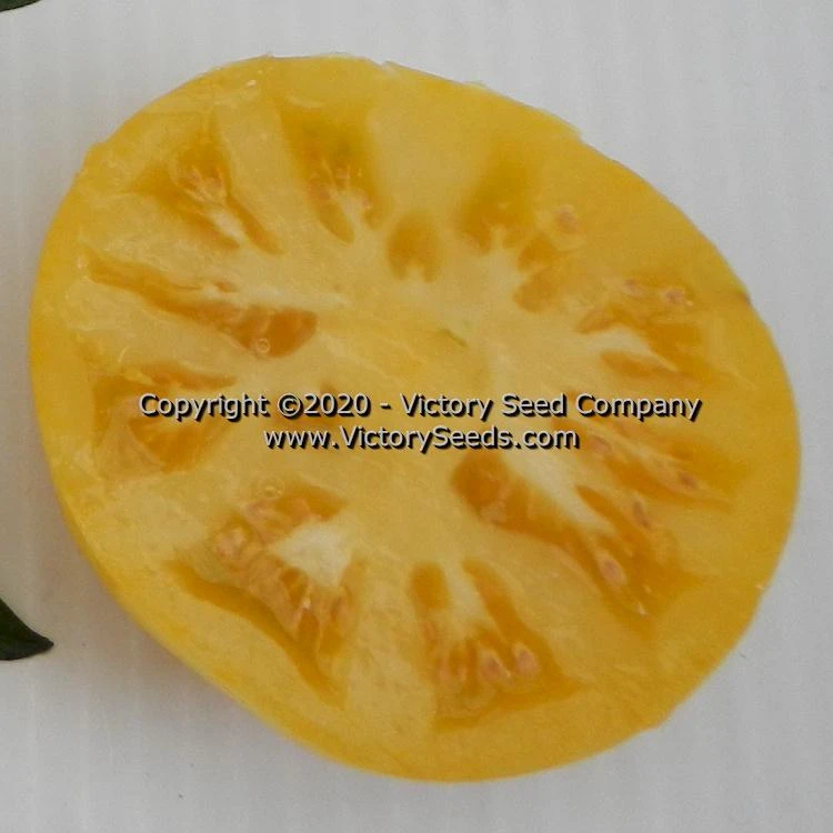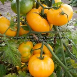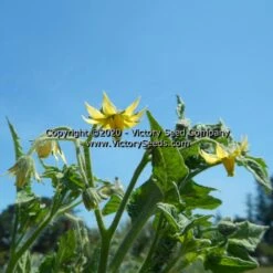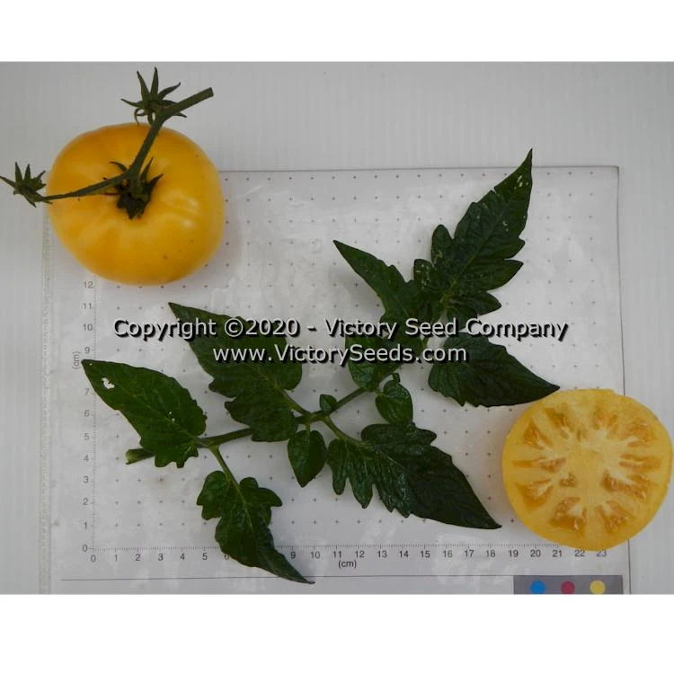 80 days, dwarf — The rugose, regular leaf plants of ‘Dwarf Jasmine Yellow’ produce lots of medium sized, four ounce, yellow colored, round shapes tomatoes with a well balanced, pleasant flavor.