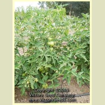 75 days, dwarf — ‘Dwarf Kelly Green’ is a rugose, regular leaf dwarf that will reach from four to five feet tall by the end a good growing season. It produces nearly round, green-fleshed, clear skinned fruit in the three to six ounce range. The flavor is well-balanced, full, and delicious. ‘Dwarf Kelly Green’ also seems to be quite disease tolerant and one of the more prolific of the Dwarf Tomato Project” varieties.