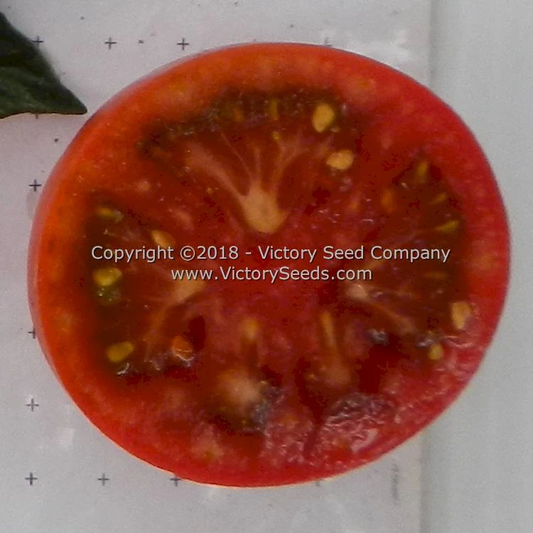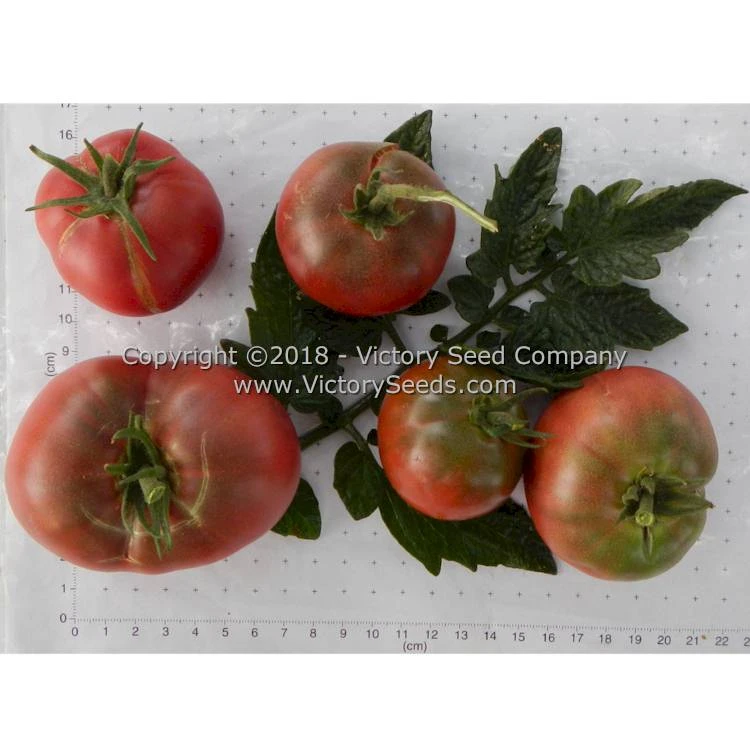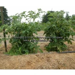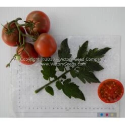75 days, dwarf — The rugose, regular-leaf plants of ‘Dwarf Mary’s Cherry’ are very productive. Its fruit are round to oblate shaped, purple colored, two to four ounce tomatoes with an excellent, complex flavor. Although most of the fruit on the plants are smaller, cherry-type, there is variability in shapes on the same plant.