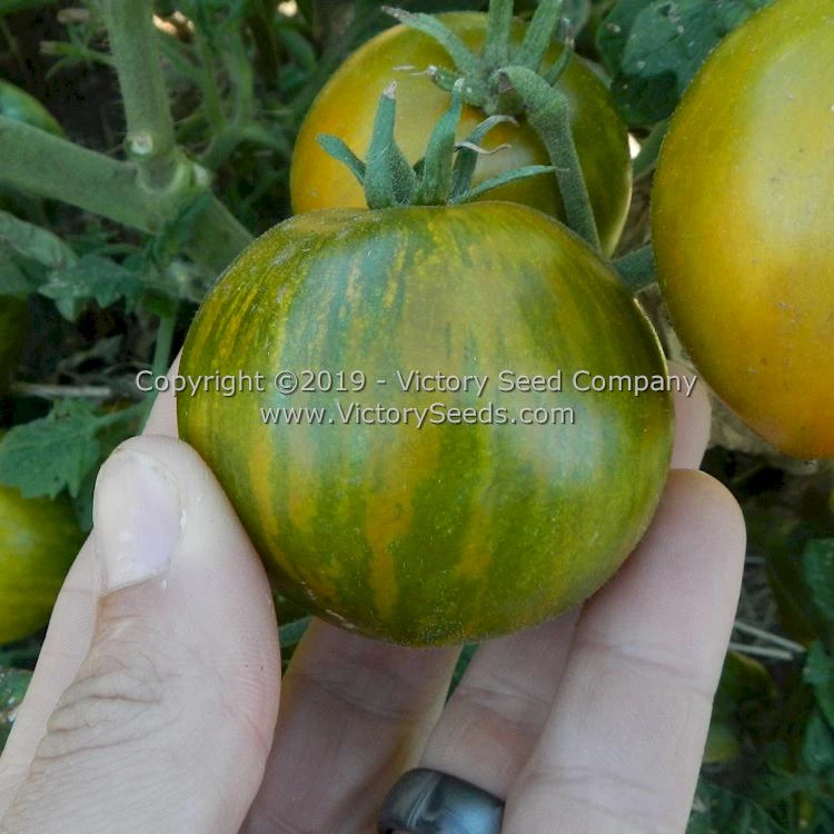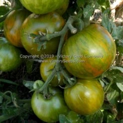 Developed by members of the “Dwarf Tomato Project,” ”Dwarf Mint Streak’ was selected out of the “Kiwi” family and named by Robin Bort. Others who contributed to its stabilization included Craig LeHoullier, Lee Newman, Justin Sieglaff, Bill Burke, Suzanna Dzejachok, Bill Yoder, Steven Adams, Laurie Sutherland, Sharon Rossy, Nicole Diana, and Desire Sommers, with Bill Minkey growing out the final selection. Each packet contains at least 20 seeds.