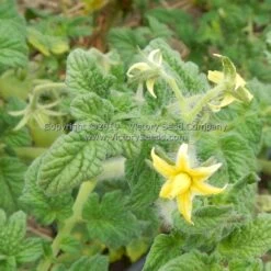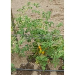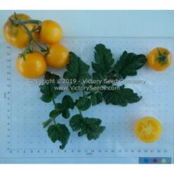63 days, dwarf — The rugose, regular leaf plants of ‘Dwarf Moby’s Cherry’ grow to about four feet high producing bright yellow to orange colored, slightly flattened globe shaped, one to two ounce cherry-type fruit. A tasty little salad or snacking tomato, its well balanced, delicious flavor, combined with its texture, makes it a perfect choice for grilling, salads and salsas.