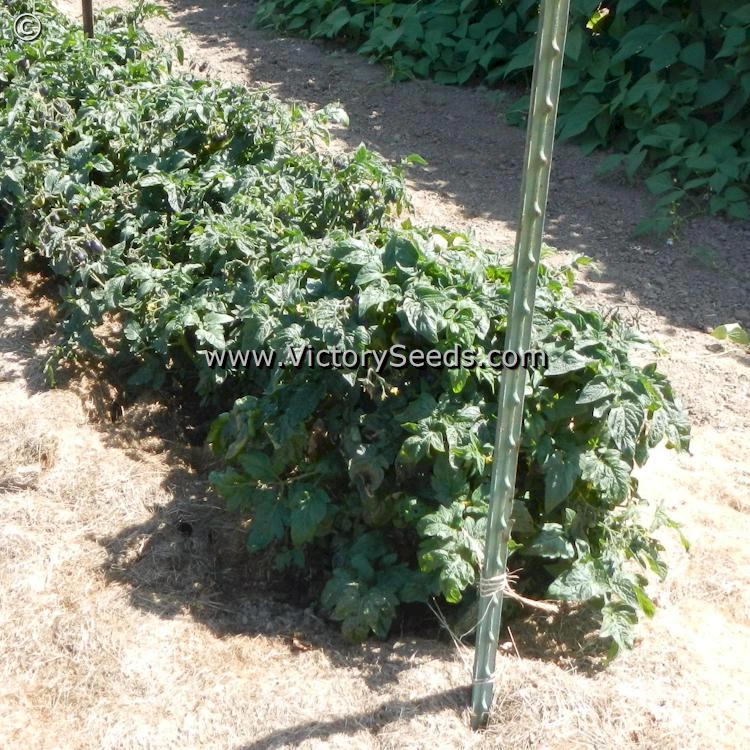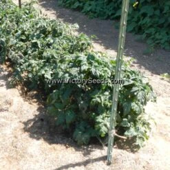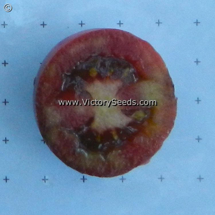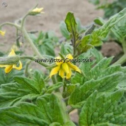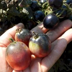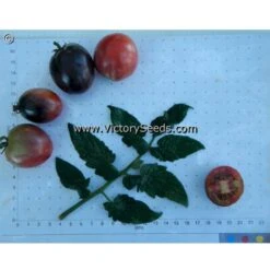 The Dwarf Tomato Project’s “Anthy” family was created when Craig LeHoullier crossed a high anthocyanin pink cherry tomato with indeterminate growth, shared by Marcia Dillon as unstabilized material from Tom Wagner, with ‘Dwarf Saucy Mary‘. Craig made some dwarf selections with purple fruit and distinct black purple shoulders in 2017. The best selection from 2018 was named ‘Dwarf Mocha’s Cherry’. It was further stabilized by Chan Mortimer. It was introduced by the Victory Seed Company in 2022. Each packet contains at least 20 seeds.