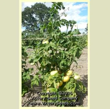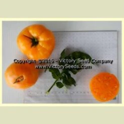 75 days, dwarf — The vigorous, rugose, potato leaf dwarf plants produce heavy yields of uniquely colored pale orange smooth oblate fruit that have a nearly matte, dull finish, ranging from eight to twelve ounces.