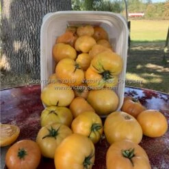 ‘Developed by members of the “Dwarf Tomato Project,” ”Dwarf Perfect Harmony’ was selected from the “Harmony” family and named by Susan Oliverson. Along with key contributor Susan Oliverson, others involved in the development of this variety are Craig LeHoullier, Dee Sackett and Lee Newman, with Bill Minkey producing the seed of the finished selection. Each packet contains at least 20 seeds.