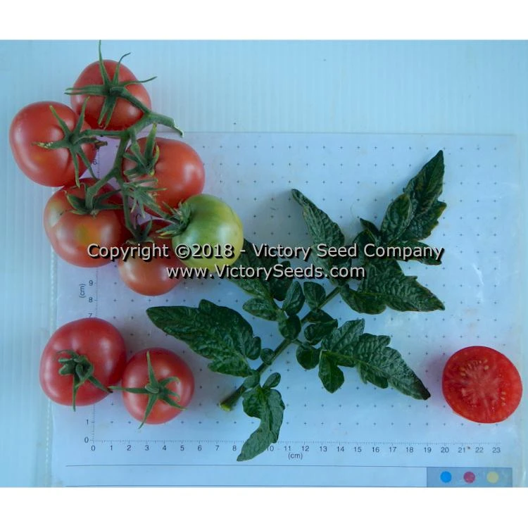 70 days, dwarf — The high yielding, rugose, regular leaf plants of ‘Dwarf Pink Opal’ produce variably sized, cherry-type fruit that range from one to three ounces each, are pink in color, and have an excellent flavor.