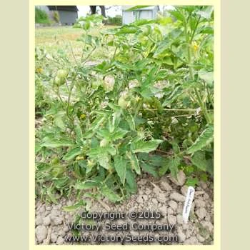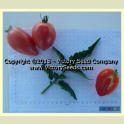 65 days, dwarf — The plants are vigorous, dwarf, with rugose regular leaves producing heavy yields of medium sized (four to seven ounce), heart-shaped, pink fruit with a delightful, balanced, sweet flavor. This was the first variety to produce ripe fruit in our 2015 garden!