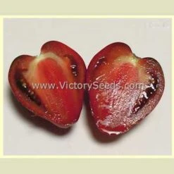 70 days, dwarf — The vigorous, rugose, regular leaf plants are among the most spreading and branching of the dwarf varieties. Producing heavy yields of medium to medium large sized (six to sixteen ounce) heart shaped purple tomatoes. ‘Dwarf Purple Heart’ has deep crimson flesh with a delicious, well-balanced flavor. Although fairly large, the fruit also ripen relatively early.