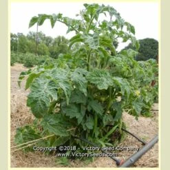 75 days, dwarf — The rugose, regular leaf plants of ‘Dwarf Sarah’s Red’ are productive and yield blocky, red-colored fruit that weigh from four to ten ounces each and deliver a nice, balanced flavor.
