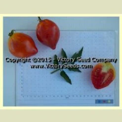‘Dwarf Scarlet Heart’ originated as a selection from the “Dwarf Tomato Project” family called “Nosey” (a cross between ‘Roza Vetrov’ and ‘Anna Banana Russian‘ made by Patrina Nuske Small in 2007). Stabilization work was done by Craig LeHoullier, Linda Black, Laurie Sutherland, Nancy Ruhl, and Bill Minkey. The final selection and naming by Linda Black and it was introduced by the Victory Seed Company for the 2016 gardening season. Each packet contains approximately 20 seeds.