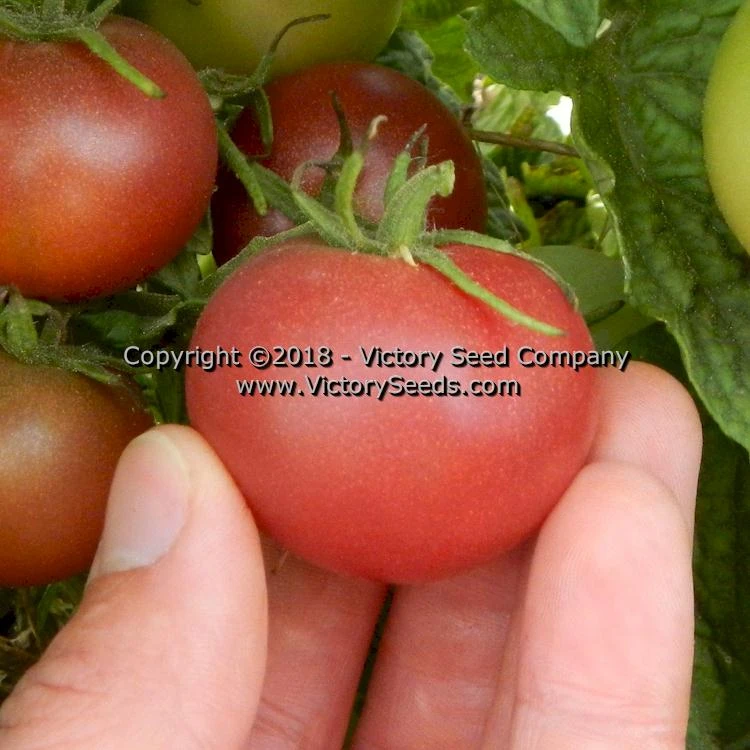 A “Dwarf Tomato Project” introduction, ‘Dwarf Velvet Night’ was selected from the “Muddy” family by Susan Oliverson, who also did the majority of the work and named this variety. Craig LeHoullier and Carol Knapp contributed to the effort.