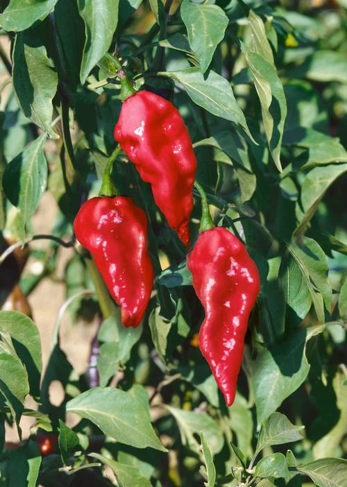 Ripe peppers measure 2 to 3 inches in length and 1 inch in width with a variable red, yellow, orange, or chocolate color. Ghost pepper pods are unique among peppers because of their characteristic shape and very thin skin.