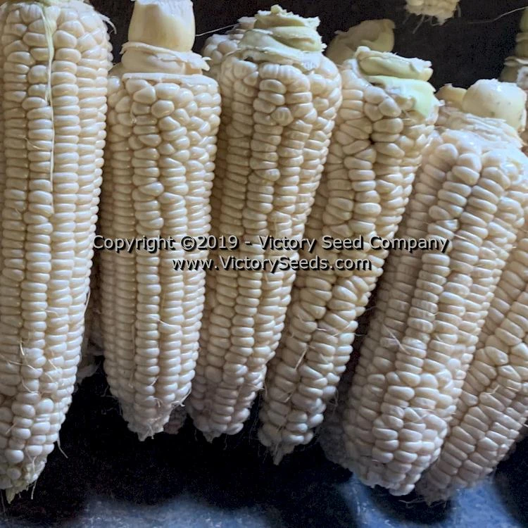 70 days — The stalks of Gill’s ‘Early White Market’ grow to about six feet in height, have some side branching, and bear two, ten inch long ears containing twelve rows of tender, sweet, white colored kernels.